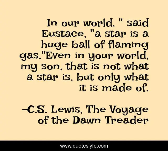 "C.S. Lewis, The Voyage of the Dawn Treader Quotes." Quoteslyfe.com, 2025. Sat. 06 Dec. 2025. <https://www.quoteslyfe.com/quote/In-our-world-said-Eustace-a-star-4320>.