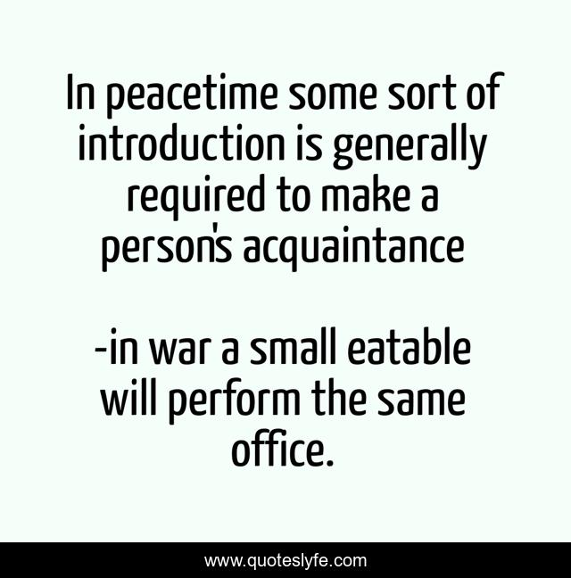 "in war a small eatable will perform the same office. Quotes." Quoteslyfe.com, 2025. Sat. 06 Dec. 2025. <https://www.quoteslyfe.com/quote/In-peacetime-some-sort-of-introduction-is-55661>.