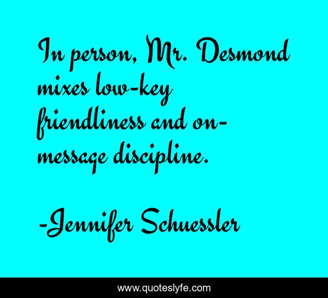 "Jennifer Schuessler Quotes." Quoteslyfe.com, 2025. Mon. 08 Dec. 2025. <https://www.quoteslyfe.com/quote/In-person-Mr-Desmond-mixes-low-key-64775>.