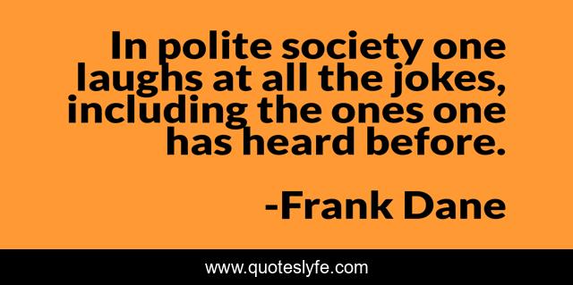 This page presents the quote "In polite society one laughs at all the jokes, including the ones one has heard before.". Author of this quote is Frank Dane. This quote is about jokes, including, before,.