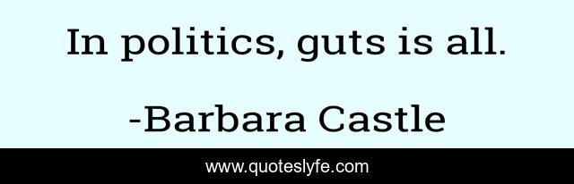 This page presents the quote "In politics, guts is all.". Author of this quote is Barbara Castle. .