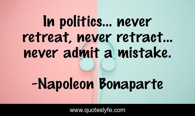 This page presents the quote "In politics... never retreat, never retract... never admit a mistake.". Author of this quote is Napoleon Bonaparte. This quote is about admit, mistake,.