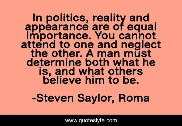 "Steven Saylor, Roma Quotes." Quoteslyfe.com, 2025. Sat. 06 Dec. 2025. <https://www.quoteslyfe.com/quote/In-politics-reality-and-appearance-are-of-56813>.