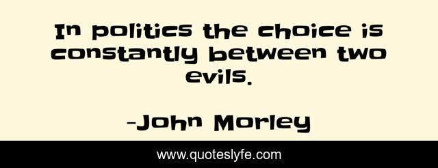 This page presents the quote "In politics the choice is constantly between two evils.". Author of this quote is John Morley. This quote is about choice, two, between,.