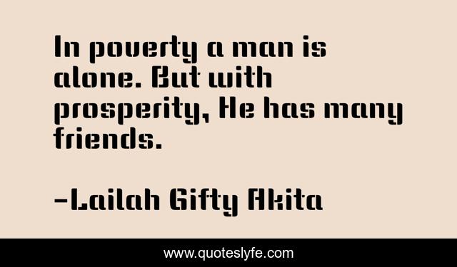 This page presents the quote "In poverty a man is alone. But with prosperity, He has many friends.". Author of this quote is Lailah Gifty Akita. This quote is about friendship, poverty, wealth, inspirational, enthusiasm,.