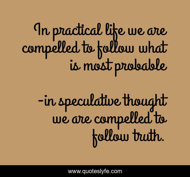 "in speculative thought we are compelled to follow truth. Quotes." Quoteslyfe.com, 2025. Fri. 05 Dec. 2025. <https://www.quoteslyfe.com/quote/In-practical-life-we-are-compelled-to-9512>.