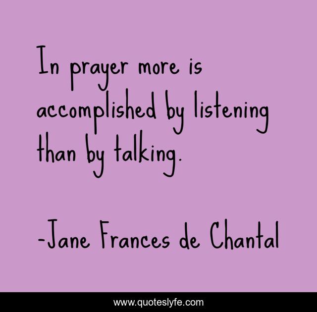 "Jane Frances de Chantal Quotes." Quoteslyfe.com, 2025. Mon. 08 Dec. 2025. <https://www.quoteslyfe.com/quote/In-prayer-more-is-accomplished-by-listening-273868>.