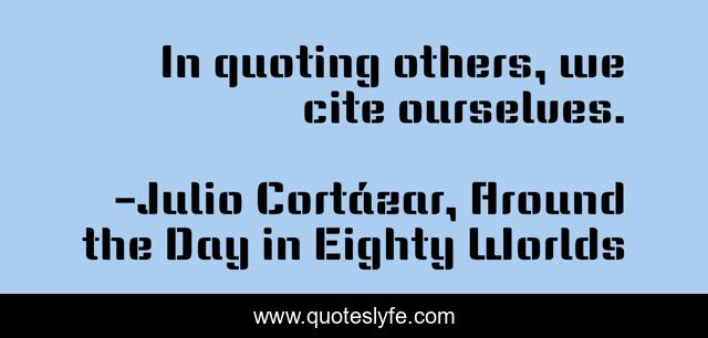 "Julio Cortázar, Around the Day in Eighty Worlds Quotes." Quoteslyfe.com, 2025. Mon. 08 Dec. 2025. <https://www.quoteslyfe.com/quote/In-quoting-others-we-cite-ourselves-22053>.