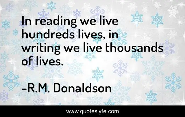 "R.M. Donaldson Quotes." Quoteslyfe.com, 2025. Sun. 07 Dec. 2025. <https://www.quoteslyfe.com/quote/In-reading-we-live-hundreds-lives-in-214912>.