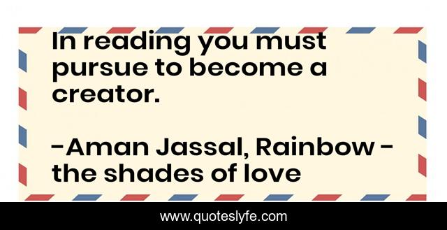 "Aman Jassal, Rainbow - the shades of love Quotes." Quoteslyfe.com, 2025. Fri. 05 Dec. 2025. <https://www.quoteslyfe.com/quote/In-reading-you-must-pursue-to-become-232053>.