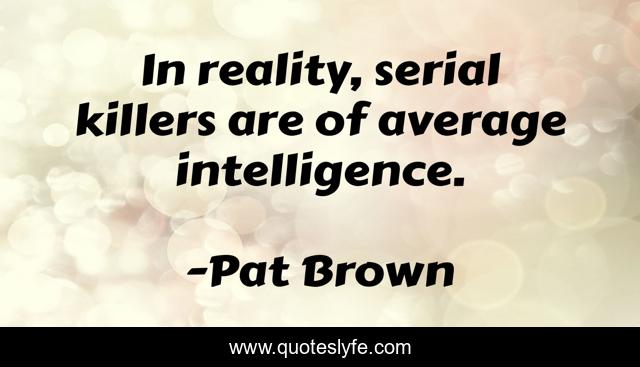 This page presents the quote "In reality, serial killers are of average intelligence.". Author of this quote is Pat Brown. This quote is about average, serial, reality,.