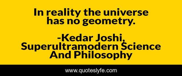 "Kedar Joshi, Superultramodern Science And Philosophy Quotes." Quoteslyfe.com, 2025. Fri. 05 Dec. 2025. <https://www.quoteslyfe.com/quote/In-reality-the-universe-has-no-geometry-93530>.