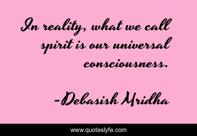 This page presents the quote "In reality, what we call spirit is our universal consciousness.". Author of this quote is Debasish Mridha. This quote is about universal-consciousness, consciousness, philosophy, debasish-mridha, reality, quotes, inspirational, enthusiasm, debasish-mridha-m-d,.