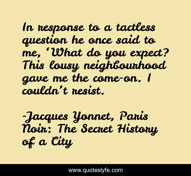 "Jacques Yonnet, Paris Noir: The Secret History of a City Quotes." Quoteslyfe.com, 2025. Fri. 05 Dec. 2025. <https://www.quoteslyfe.com/quote/In-response-to-a-tactless-question-he-280769>.
