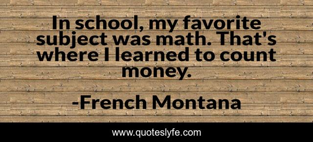 This page presents the quote "In school, my favorite subject was math. That's where I learned to count money.". Author of this quote is French Montana. This quote is about school, favorite, math,.