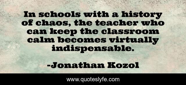 This page presents the quote "In schools with a history of chaos, the teacher who can keep the classroom calm becomes virtually indispensable.". Author of this quote is Jonathan Kozol. This quote is about history, chaos, calm,.