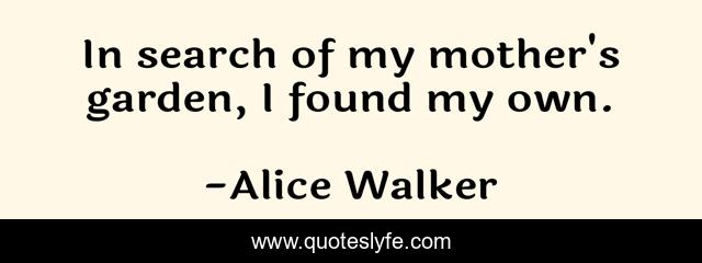 "Alice Walker Quotes." Quoteslyfe.com, 2025. Tue. 09 Dec. 2025. <https://www.quoteslyfe.com/quote/In-search-of-my-mother-s-garden-316114>.