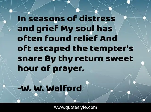 This page presents the quote "In seasons of distress and grief My soul has often found relief And oft escaped the tempter's snare By thy return sweet hour of prayer.". Author of this quote is W. W. Walford. .