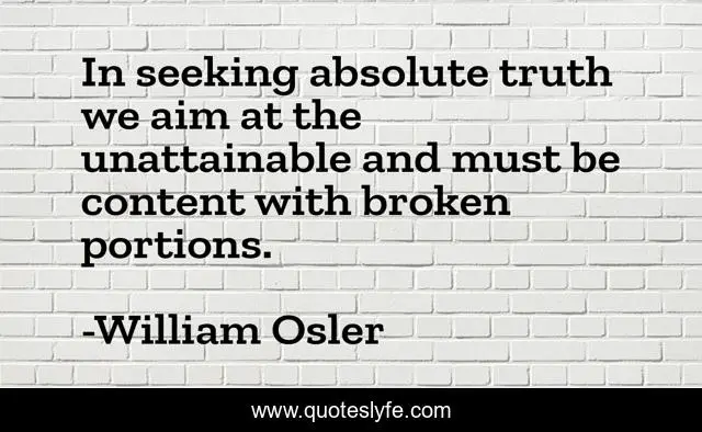 This page presents the quote "In seeking absolute truth we aim at the unattainable and must be content with broken portions.". Author of this quote is William Osler. .