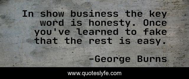 This page presents the quote "In show business the key word is honesty. Once you've learned to fake that the rest is easy.". Author of this quote is George Burns. .