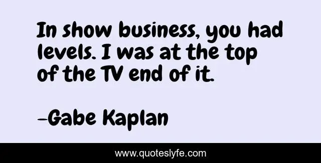 This page presents the quote "In show business, you had levels. I was at the top of the TV end of it.". Author of this quote is Gabe Kaplan. This quote is about levels, end,.