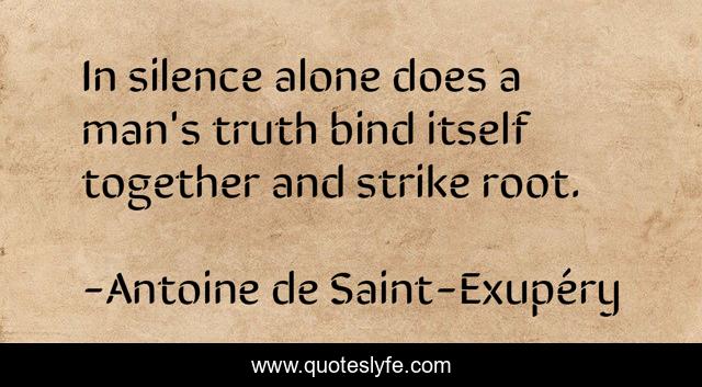 This page presents the quote "In silence alone does a man's truth bind itself together and strike root.". Author of this quote is Antoine de Saint-Exupéry. This quote is about religion, human-nature, spirituality, truth, silence, man,.