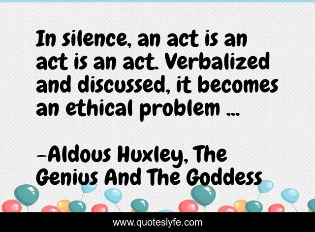 "Aldous Huxley, The Genius And The Goddess Quotes." Quoteslyfe.com, 2025. Mon. 08 Dec. 2025. <https://www.quoteslyfe.com/quote/In-silence-an-act-is-an-act-164167>.