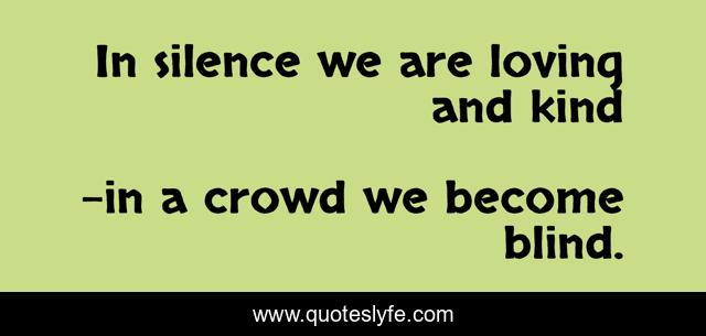 "in a crowd we become blind. Quotes." Quoteslyfe.com, 2025. Sat. 06 Dec. 2025. <https://www.quoteslyfe.com/quote/In-silence-we-are-loving-and-kind-74656>.