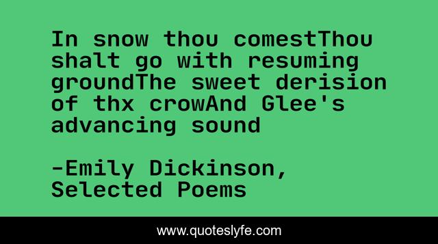 This page presents the quote "In snow thou comestThou shalt go with resuming groundThe sweet derision of thx crowAnd Glee's advancing sound". Author of this quote is Emily Dickinson, Selected Poems. This quote is about poem, poetry,.