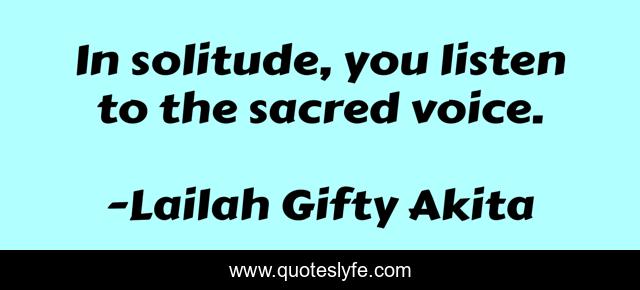 This page presents the quote "In solitude, you listen to the sacred voice.". Author of this quote is Lailah Gifty Akita. This quote is about instinct, voice, solitude, listen,.