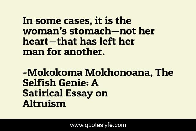 "Mokokoma Mokhonoana, The Selfish Genie: A Satirical Essay on Altruism Quotes." Quoteslyfe.com, 2025. Mon. 08 Dec. 2025. <https://www.quoteslyfe.com/quote/In-some-cases-it-is-the-woman-77277>.