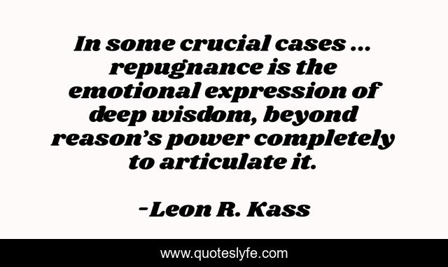 "Leon R. Kass Quotes." Quoteslyfe.com, 2025. Fri. 05 Dec. 2025. <https://www.quoteslyfe.com/quote/In-some-crucial-cases-repugnance-is-the-205472>.