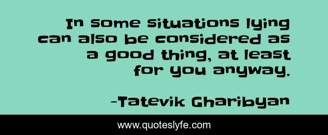 This page presents the quote "In some situations lying can also be considered as a good thing, at least for you anyway.". Author of this quote is Tatevik Gharibyan. .