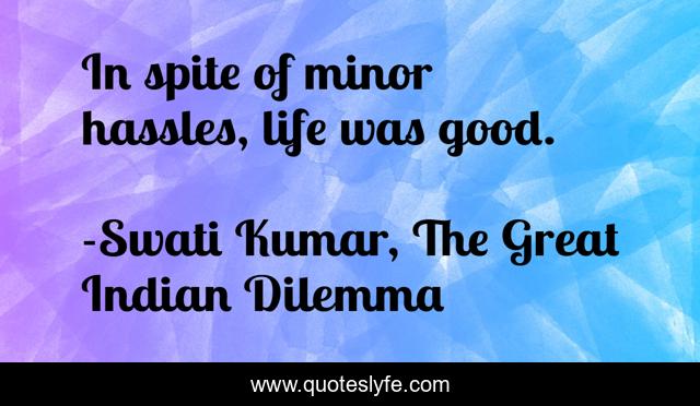 "Swati Kumar, The Great Indian Dilemma Quotes." Quoteslyfe.com, 2025. Fri. 05 Dec. 2025. <https://www.quoteslyfe.com/quote/In-spite-of-minor-hassles-life-was-57534>.