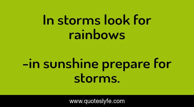 "in sunshine prepare for storms. Quotes." Quoteslyfe.com, 2025. Fri. 05 Dec. 2025. <https://www.quoteslyfe.com/quote/In-storms-look-for-rainbows-83408>.