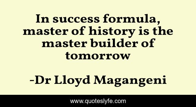 This page presents the quote "In success formula, master of history is the master builder of tomorrow". Author of this quote is Dr Lloyd Magangeni. .