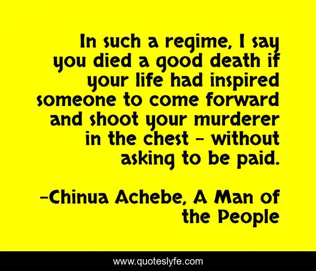 "Chinua Achebe, A Man of the People Quotes." Quoteslyfe.com, 2025. Mon. 08 Dec. 2025. <https://www.quoteslyfe.com/quote/In-such-a-regime-I-say-you-57079>.