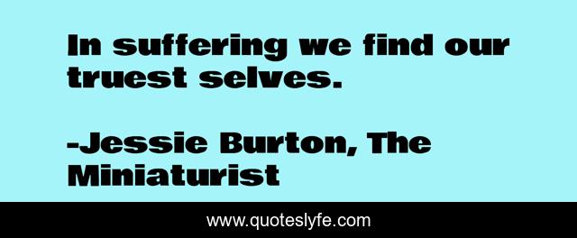 "Jessie Burton, The Miniaturist Quotes." Quoteslyfe.com, 2025. Fri. 05 Dec. 2025. <https://www.quoteslyfe.com/quote/In-suffering-we-find-our-truest-selves-143535>.