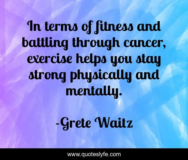This page presents the quote "In terms of fitness and battling through cancer, exercise helps you stay strong physically and mentally.". Author of this quote is Grete Waitz. This quote is about strong, exercise, fitness,.