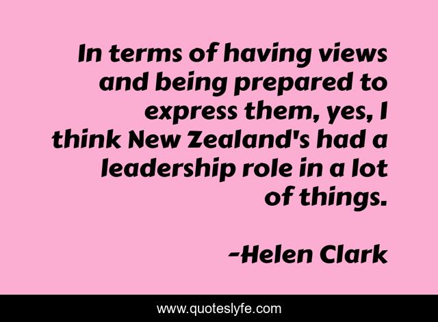 This page presents the quote "In terms of having views and being prepared to express them, yes, I think New Zealand's had a leadership role in a lot of things.". Author of this quote is Helen Clark. This quote is about new, role, think,.