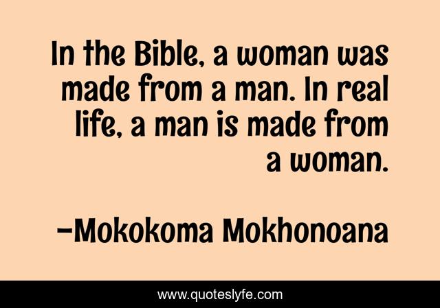 "Mokokoma Mokhonoana Quotes." Quoteslyfe.com, 2025. Mon. 08 Dec. 2025. <https://www.quoteslyfe.com/quote/In-the-Bible-a-woman-was-made-246933>.