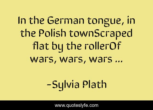 This page presents the quote "In the German tongue, in the Polish townScraped flat by the rollerOf wars, wars, wars ...". Author of this quote is Sylvia Plath. This quote is about german, poland, war,.