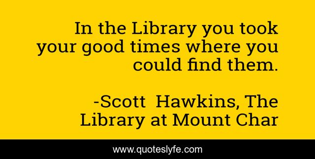 "Scott Hawkins, The Library at Mount Char Quotes." Quoteslyfe.com, 2025. Sun. 07 Dec. 2025. <https://www.quoteslyfe.com/quote/In-the-Library-you-took-your-good-243335>.