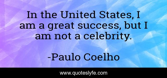 This page presents the quote "In the United States, I am a great success, but I am not a celebrity.". Author of this quote is Paulo Coelho. This quote is about great, celebrity,.