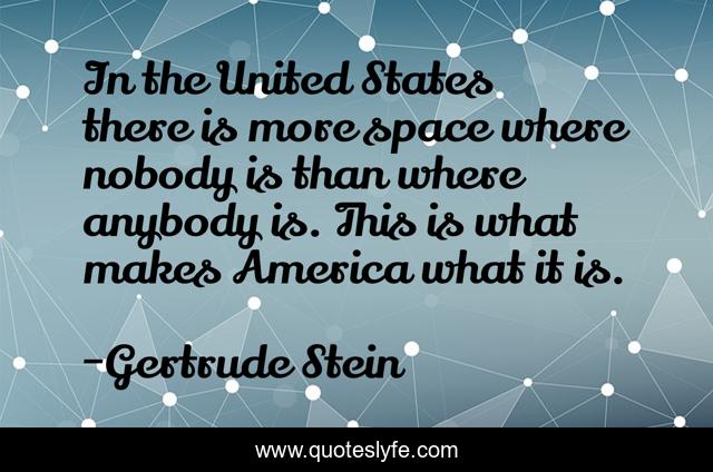 This page presents the quote "In the United States there is more space where nobody is than where anybody is. This is what makes America what it is.". Author of this quote is Gertrude Stein. This quote is about america, americans,.