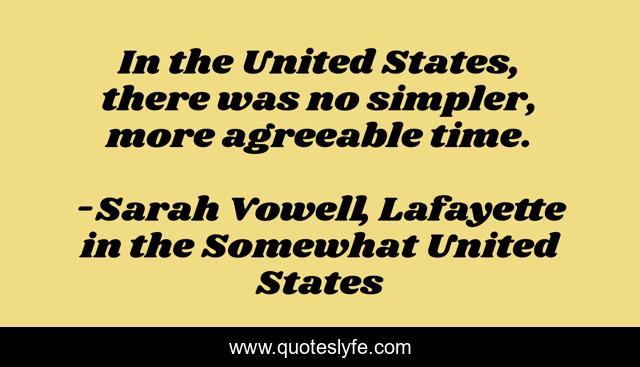 This page presents the quote "In the United States, there was no simpler, more agreeable time.". Author of this quote is Sarah Vowell, Lafayette in the Somewhat United States. This quote is about the-united-states, past, future, time, generations, history,.