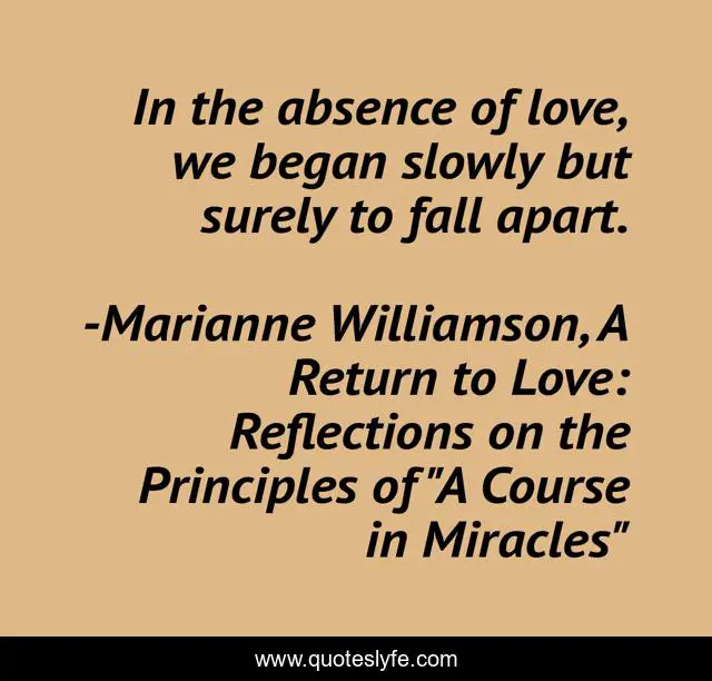 "Marianne Williamson, A Return to Love: Reflections on the Principles of "A Course in Miracles" Quotes." Quoteslyfe.com, 2025. Sat. 06 Dec. 2025. <https://www.quoteslyfe.com/quote/In-the-absence-of-love-we-began-1117>.