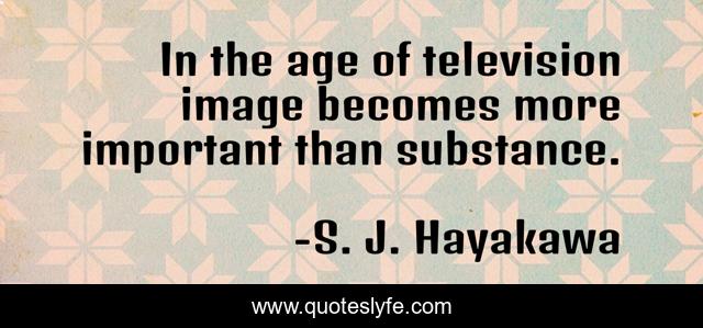 This page presents the quote "In the age of television image becomes more important than substance.". Author of this quote is S. J. Hayakawa. .