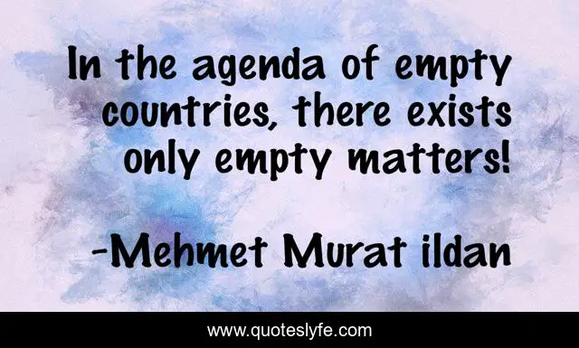 This page presents the quote "In the agenda of empty countries, there exists only empty matters!". Author of this quote is Mehmet Murat ildan. .