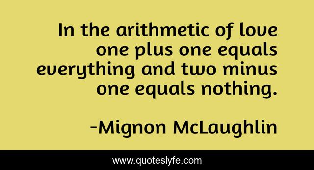 "Mignon McLaughlin Quotes." Quoteslyfe.com, 2025. Fri. 05 Dec. 2025. <https://www.quoteslyfe.com/quote/In-the-arithmetic-of-love-one-plus-269772>.